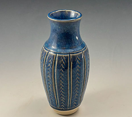 White stoneware vase, 8"x4" stamped, incised, cone 5 electric