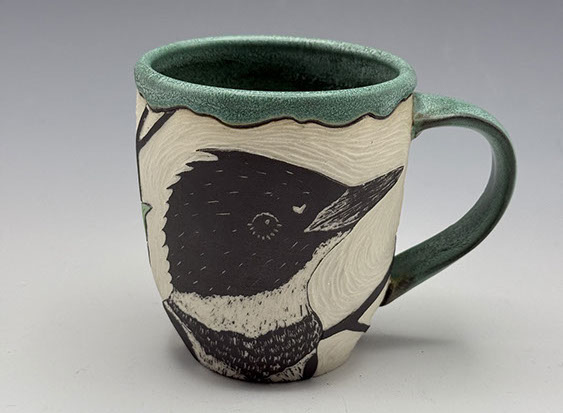 Porcelain mug with sgraffito drawing